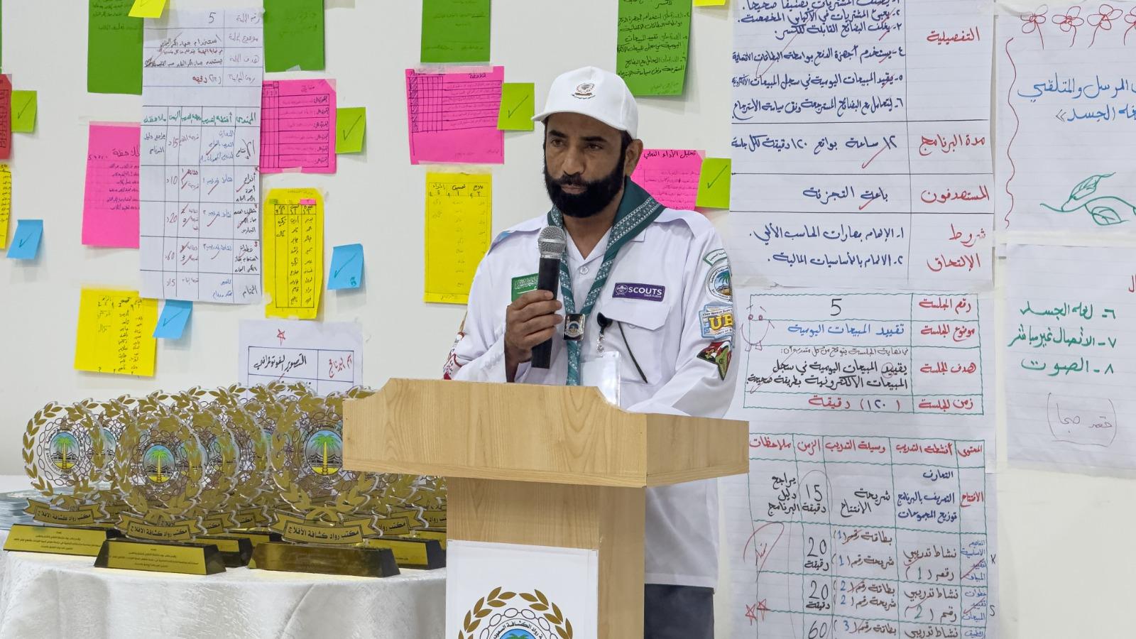 وتضمن الحفل الخطابي المقام بهذه المناسبة كلمة للمشرف على الدراسة عبدالرحمن الفرشان، أكد فيها حرص الجمعية على تطبيق سياسة تنمية القيادات الكشفية العالمية والمحلية، بما يسهم في رفع كفاءة القادة، وتحقيق فاعليتهم والتزامهم ودافعيتهم، بما ينعكس على جودة البرامج المقدمة للمنتسبين للحركة الكشفية، مشيراً إلى أهمية وجود رؤية واضحة للاحتياجات الفعلية من الموارد القيادية، والعمل على دعمها وتأهيلها بصورة مستمرة.