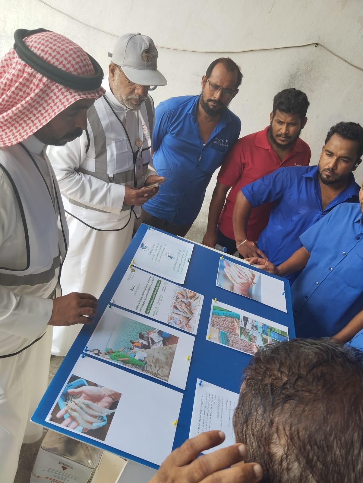 نظم مكتب وزارة البيئة والمياه والزراعة بمحافظة القنفذة اليوم، ورشة عمل بعنوان “توعية الصيادين والمجتمعات المحلية بالطرق الصحيحة لاستخدام شباك صيد الربيان”، وذلك في سوق السمك ومرفأ الصيادين بالمحافظة، بحضور عدد من الصيادين والمهتمين بالبيئة البحرية.