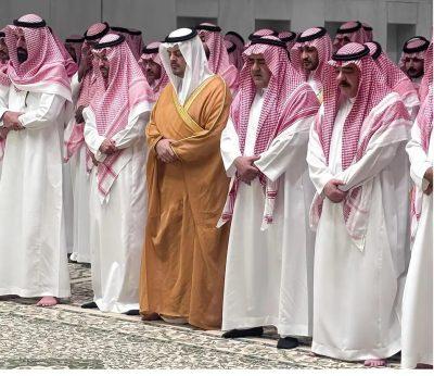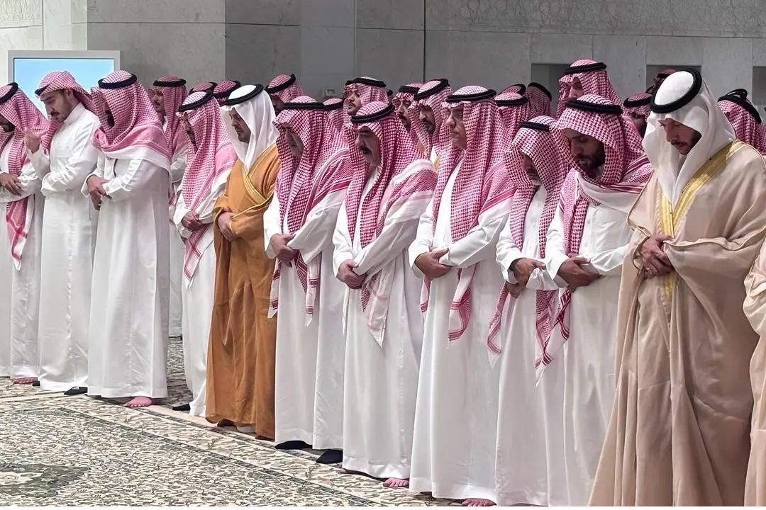 وأدى الصلاة مع سموه، صاحب السمو الملكي الأمير فهد بن مقرن بن عبدالعزيز, وصاحب السمو الملكي الأمير عبدالعزيز بن مقرن بن عبدالعزيز, وصاحب السمو الملكي الأمير فيصل بن مقرن بن عبدالعزيز, وصاحب السمو الملكي الأمير بندر بن مقرن بن عبدالعزيز المستشار في الديوان الملكي, وصاحب السمو الملكي الأمير فيصل بن فهد بن مقرن بن عبدالعزيز نائب أمير منطقة حائل، وعددٌ من أصحاب السمو الأمراء.