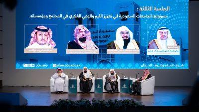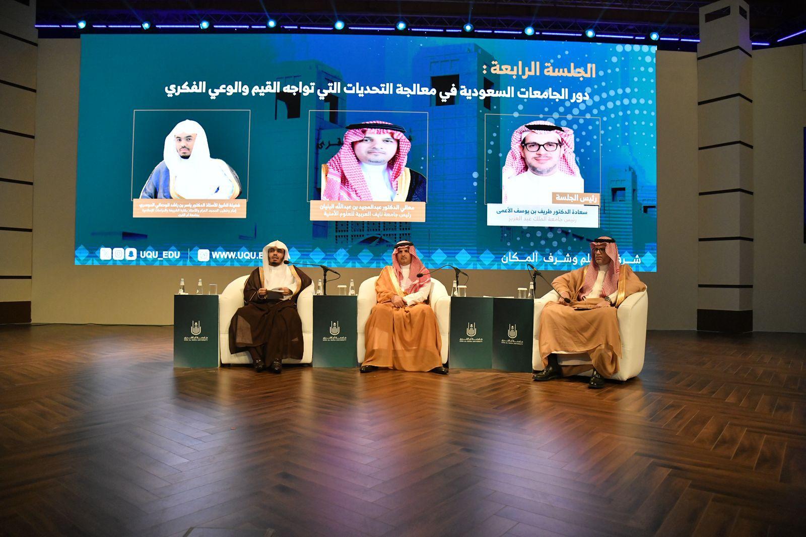 اختتمت جامعة أمِّ القُرى أعمال مؤتمر مسؤوليَّة الجامعات في تعزيز القيم والوعي الفكري الذي أُقيم خلال الفترة: 25-27 أغسطس 2025م، في المدينة الجامعية بالعابدية؛ تحت رعاية خادم الحرمين الشريفين الملك سلمان بن عبدالعزيز آل سعود -حفظه الله-، وحضور نائب أمير منطقة مكة المكرمة صاحب السمو الملكي الأمير سعود بن مشعل بن عبدالعزيز.