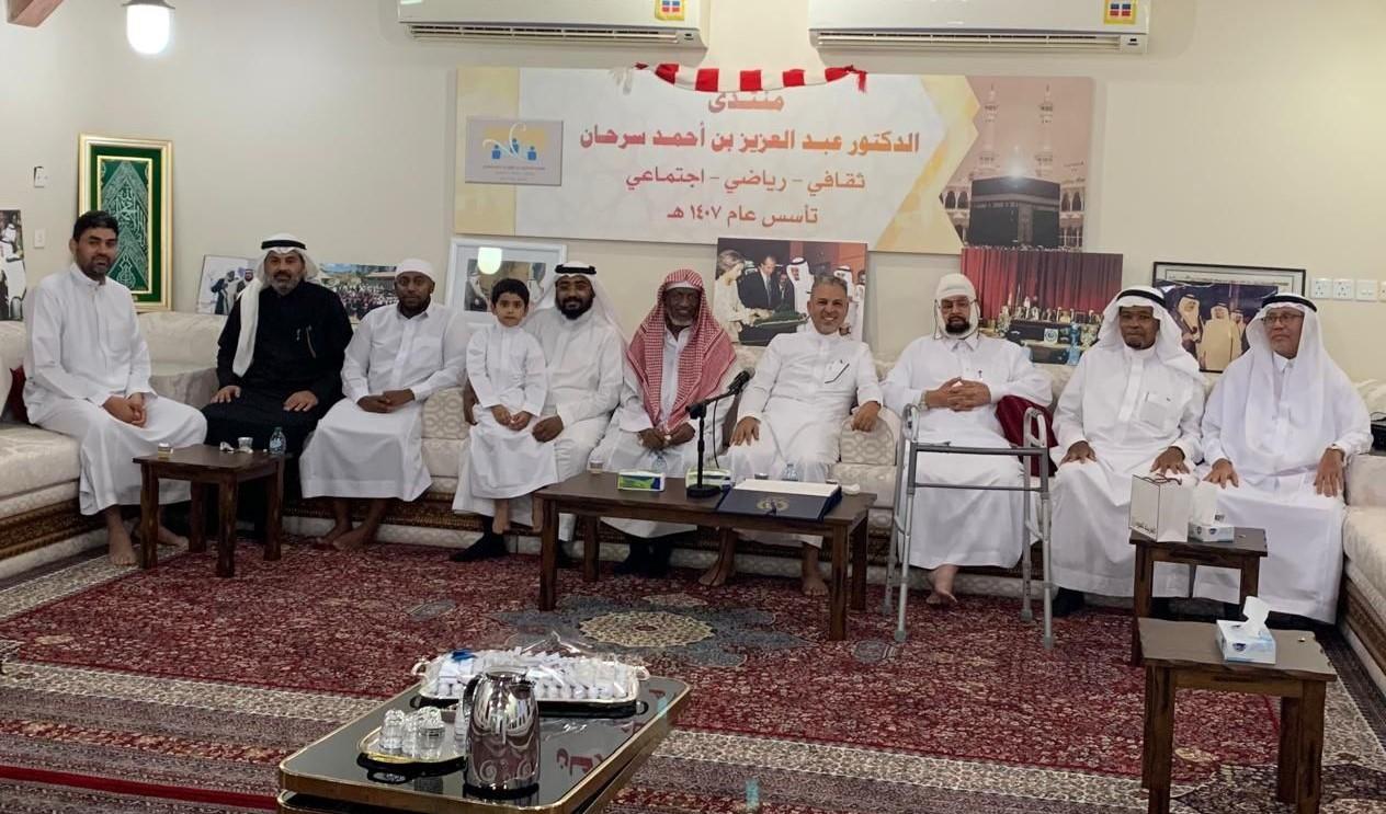 حيث قام البروفيسور محمود كسناوي، رئيس جمعية المتقاعدين بمنطقة مكة المكرمة (سابقا) والدكتور سمير رضوان والدكتور محمد تاج العروسي، والأستاذ نشأت علاف، والدكتور عمار بن عبدالله عطار، والسيد رضا عطاس، والأستاذ غازي سرحان، والدكتور جميل سرحان، بزيارته واعرب معالي الدكتور عبدالعزيز سرحان عن بالغ الشكر والتقدير للجميع على هذه المبادرة الكريمة واللفتة الجميلة.