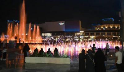 وبيّن أن المشروع يتكون من عناصر تقنية وفنية متميزة تشمل شاشة مائية ضخمة بعرض (24) مترًا وارتفاع (8) أمتار، مزودة بنظام إسقاط ضوئي متقدم للعروض المرئية، ونظام متكامل لتشكيل الضباب يتزامن مع عروض النافورة، بالإضافة إلى نظام صوتي عالي الجودة مكون من (16) سماعة، وحوالي (4) شاشات عرض خارجية بمساحة (35م²) لكل منها، ومنظومة إضاءة حديثة تضم أكثر من (460) وحدة، وأعمدة إنارة عصرية.