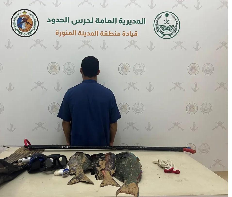 ضبطت الدوريات الساحلية لحرس الحدود في ينبع بمنطقة المدينة المنورة مواطنًا مخالفًا للائحة الأمن والسلامة لمزاولي الأنشطة البحرية في المناطق البحرية للمملكة العربية السعودية، لممارسته الصيد دون تصريح، وبحوزته أسماك مصيدة، واتُخذت الإجراءات النظامية بحقه بالتنسيق مع الجهات المختصة.