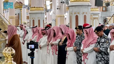 وأمَّ المصلين فضيلة إمام المسجد النبوي الشريف الشيخ الدكتور عبدالله القرافي، الذي ألقى خطبة عقب الصلاة دعا فيها إلى تقوى الله في السرّ والعلن، والرجوع إليه بالإنابة والطاعة.