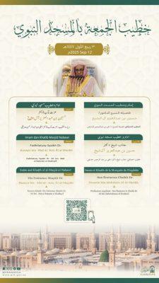 أوضحت رئاسة الشؤون الدينية بالمسجد الحرام والمسجد النبوي، عن أسماء خطيبا وإماما صلاة الجمعة في الحرمين الشريفين ليوم بعد غد الجمعة الموافق 20 ربيع الأول 1447هـ وذلك ضمن جدولها الدوري لتنظيم الإمامة والخطابة.