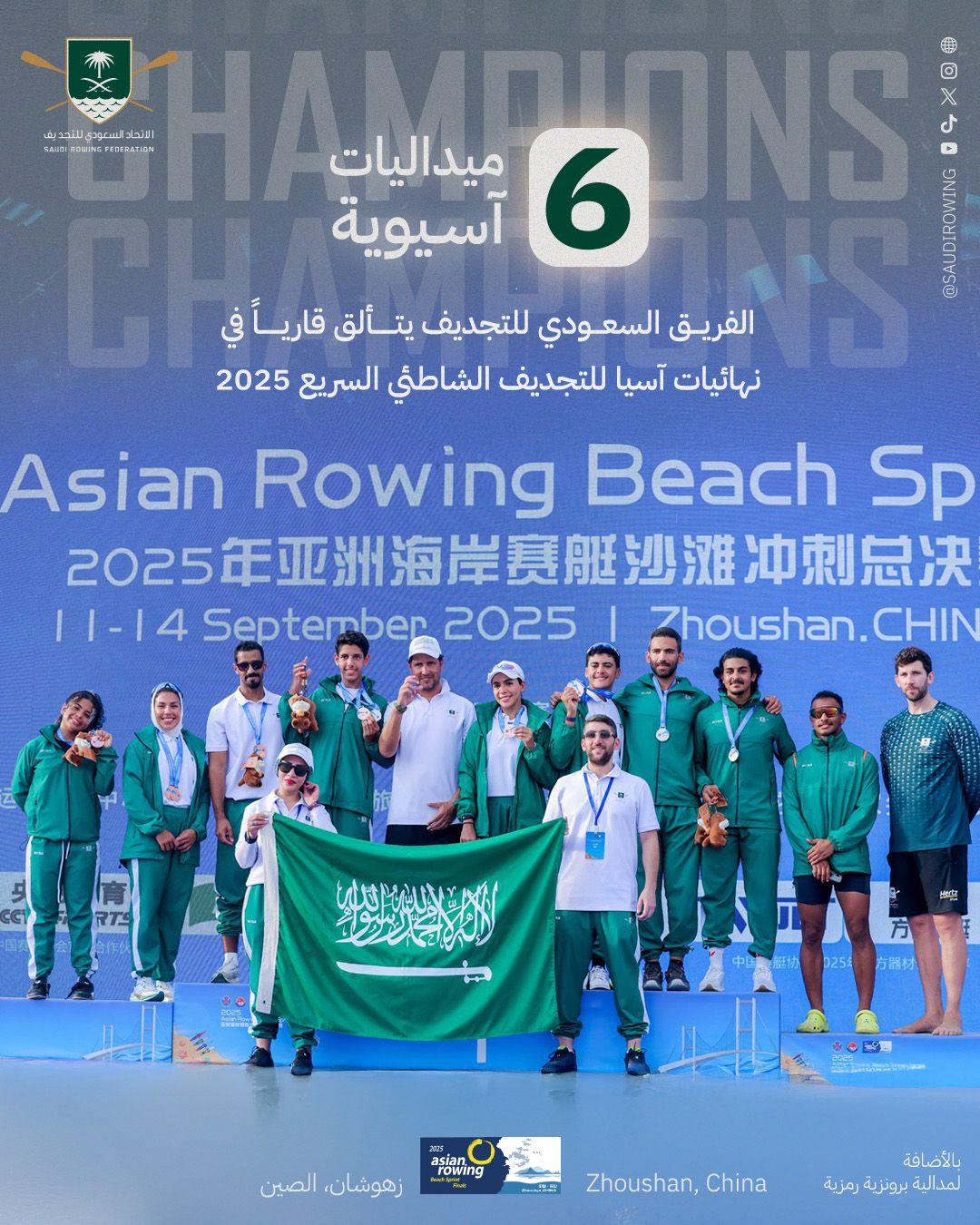 أثبت المنتخب السعودي للتجديف حضوره القوي في نهائيات بطولة آسيا للتجديف الشاطئي السريع 2025، التي احتضنها شاطئ نانشا بيتش بمدينة زهوشان الصينية، بعد أن أنهى مشاركته بحصيلة تاريخية بلغت مداليتين فضيتين وأربع برونزيات، وسط منافسات قوية جمعت نخبة القوارب الآسيوية.