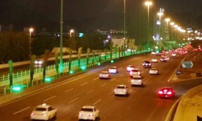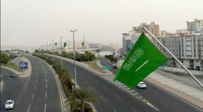 وقد أضفى اللون الأخضر الذي غمر المباني والجسور حالة من الانسجام البصري والرمزي، تعبيرًا عن الاعتزاز بالهوية الوطنية وترسيخًا لمعاني الولاء والانتماء.