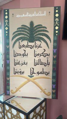 كما نفذت فنانة محافظة بدر – عهود الصبحي لوحة فنية مميزة جمعت بين فنون الخط العربي والفن التشكيلي بهوية اليوم الوطني ، ولوحة بفنون النحت للفنانة المبدعة نادية مزين التي تمثل المملكة في المحافل الدولية عبر بوابة وزارة الثقافة ، لكل هذا الجمال والفن والإبداع دوره مع الكلمة والشعر والقصة القصيرة والنصوص المسرحية التي كتبت بأنامل طلاب مدارس الهيئة نهديه باسم مركز التواصل الحضاري لوطن نعتز به ونفخر بمنجزاته ونجدد العهد والبيعة لقيادته الرشيدة لنردد وبكل صدق أن عزنا بطبعنا وبرؤيتنا وبطموحنا الذي يعانق السحاب، وبدوره المعهود قدمت مشرفة المركز خطابات شكر وتقدير لكل مشارك ومشاركة باسم مركز التواصل الحضاري منارة الفكر والثقافة والتعايش والسلام وتعزيز القيم الوطنية.