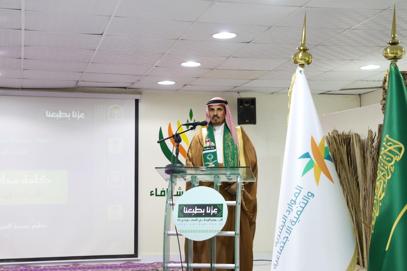 احتفى مركز التنمية الاجتماعية بمحافظة وادي الدواسر بالشراكة مع جمعية التنمية الأهلية بالشرافاء، أمس، باليوم الوطني الـ95 للمملكة، من خلال تنظيم فعاليات ومسابقات وطنية، بحضور محافظ وادي الدواسر فهد بن عبدالله المسعود، وعدد من مسؤولي الجهات الحكومية وجمع من الأهالي.