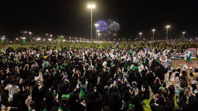 وقالت أمانة تبوك أن الفعاليات شهدت تنوعًا في برامجها ما بين العروض الوطنية والفنية والفلكلورية، والأركان التفاعلية، والأنشطة الثقافية والمجتمعية، التي أضفت أجواءً من الفرح والفخر بهذه المناسبة الغالية، كما توشحت ميادين المدينة وطرقاتها بالأعلام واللافتات الوطنية والإضاءات الخضراء، في لوحة بصرية تجسّد معاني الولاء والانتماء.