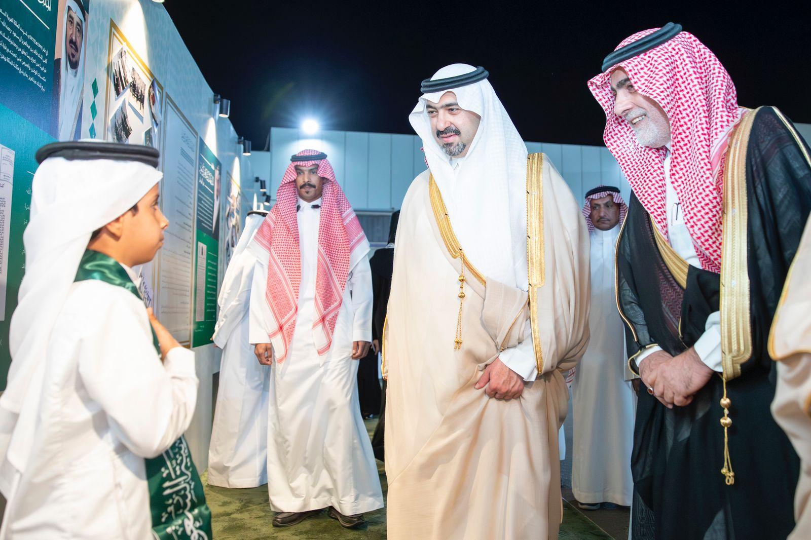 بعد ذلك تجول سموه بالمعرض المصاحب للاحتفال، ثم شاهد سموه مجموعة من الأنشطة التي تضم أعمالًا ومشاركات متنوعة تحكي مسيرة المملكة منذ توحيدها وحتى عهدنا الزاهر.
