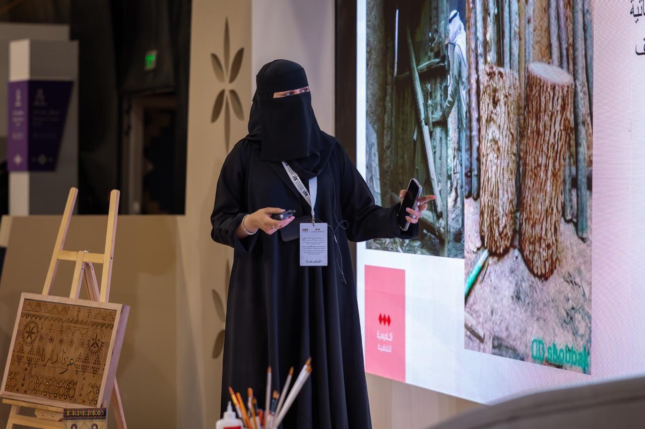 جاء ذلك خلال الورشة التي قدّمتها نجاح العمري، واستهلتها بالتعريف بالنقوش النجدية بوصفها فنًّا زخرفيًّا يُجسد بيئة الجزيرة العربية، ويرتبط بالأبواب والنوافذ والزخارف المعمارية في منطقة نجد، مشيرةً إلى أنّ هذه النقوش تتميز بالبساطة والتناغم بين الخامات المحلية والوحدات الهندسية والنباتية المستوحاة من البيئة الصحراوية مثل سعف النخيل, والأثل, والأزهار المحلية، مؤكدةً أنّ الحرفيين استخدموا أدوات بسيطة وتقنيات يدوية كالحز, والنحت، والحفر، لإضفاء طابعٍ فني مميز على الأبنية القديمة.