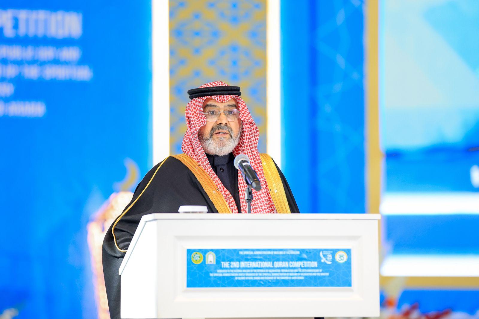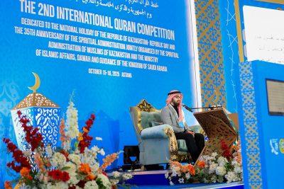 من جانبه أكد سعادة سفير خادم الحرمين الشريفين لدى جمهورية كازاخستان الأستاذ فيصل بن حنيف القحطاني في كلمة ألقاها خلال الحفل الافتتاحي أن المملكة العربية السعودية منذ تأسيسها أولت اهتمامًا بالغًا بالقرآن الكريم، فأنشأت الكليات والمعاهد والمدارس المتخصصة لتعليم القرآن وحفظه، وأقامت المسابقات الدولية في رحاب الحرمين الشريفين تشجيعًا لحفظ كتاب الله وتجويده، كما أنشأت مجمع الملك فهد لطباعة المصحف الشريف بالمدينة المنورة، الذي تُرجِم المصحف من خلاله إلى أكثر من 79 لغة — منها اللغة الكازاخية — ويتم توزيعها مجانًا على المسلمين في شتى أنحاء العالم.