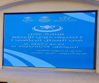 نفذت الإدارة العامة للتعليم بمحافظة الطائف ممثلة في قسم ذوي الإعاقة بالتعاون مع الإتحاد السعودي لألعاب القوى البارالمبية ورشة عمل “التعريف بأبجديات التصنيف ومستوى الألعاب الرياضية المتناسبة مع الطلاب ذوي الإعاقة”، بحضور 50 معلم ومعلمة من برامج ذوي الإعاقة ويأتي تنفيذ هذه الورشة ضمن مبادرة تعزيز ممارسة الرياضة واكتشاف المواهب في مجال ألعاب القوى البارالمبية.