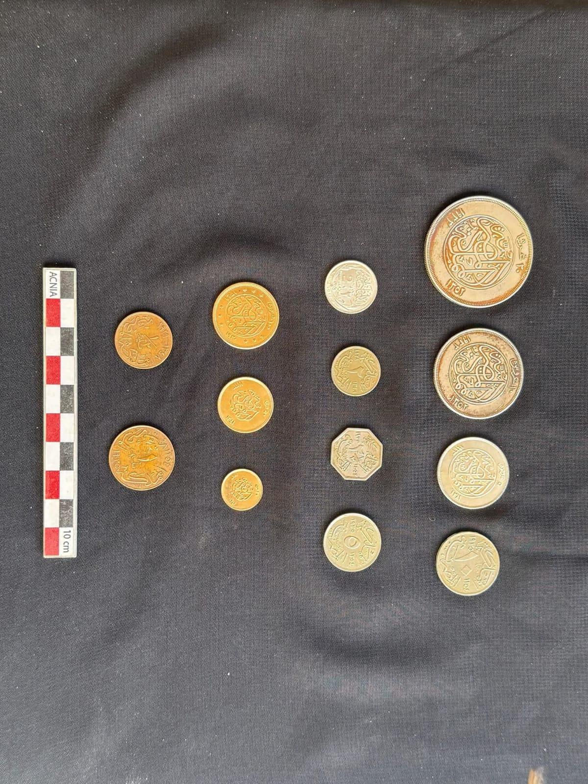 كما عثر بداخلها على ثلاث عشرة قطعة نقدية من فئات مختلفة، تراوحت ما بين المليمات والعملات الذهبية من فئة 100 قرش كما تضم المجموعة عملات صغيرة من عهد الملك فؤاد الأول، وعملة نادرة من فئة قرشان للسلطان حسين كامل، بالإضافة إلى عملات فضية من فئات 5، 10، 20 قرش وثلاث عملات ذهبية من فئات 20، 50، 100 قرش للملك فؤاد الأول، والتي تعد من أندر الإصدارات في تاريخ المسكوكات المصرية الحديثة.