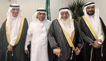 الشيخ صلاح البدير يتوسط العريس ووالدة وشقيقة