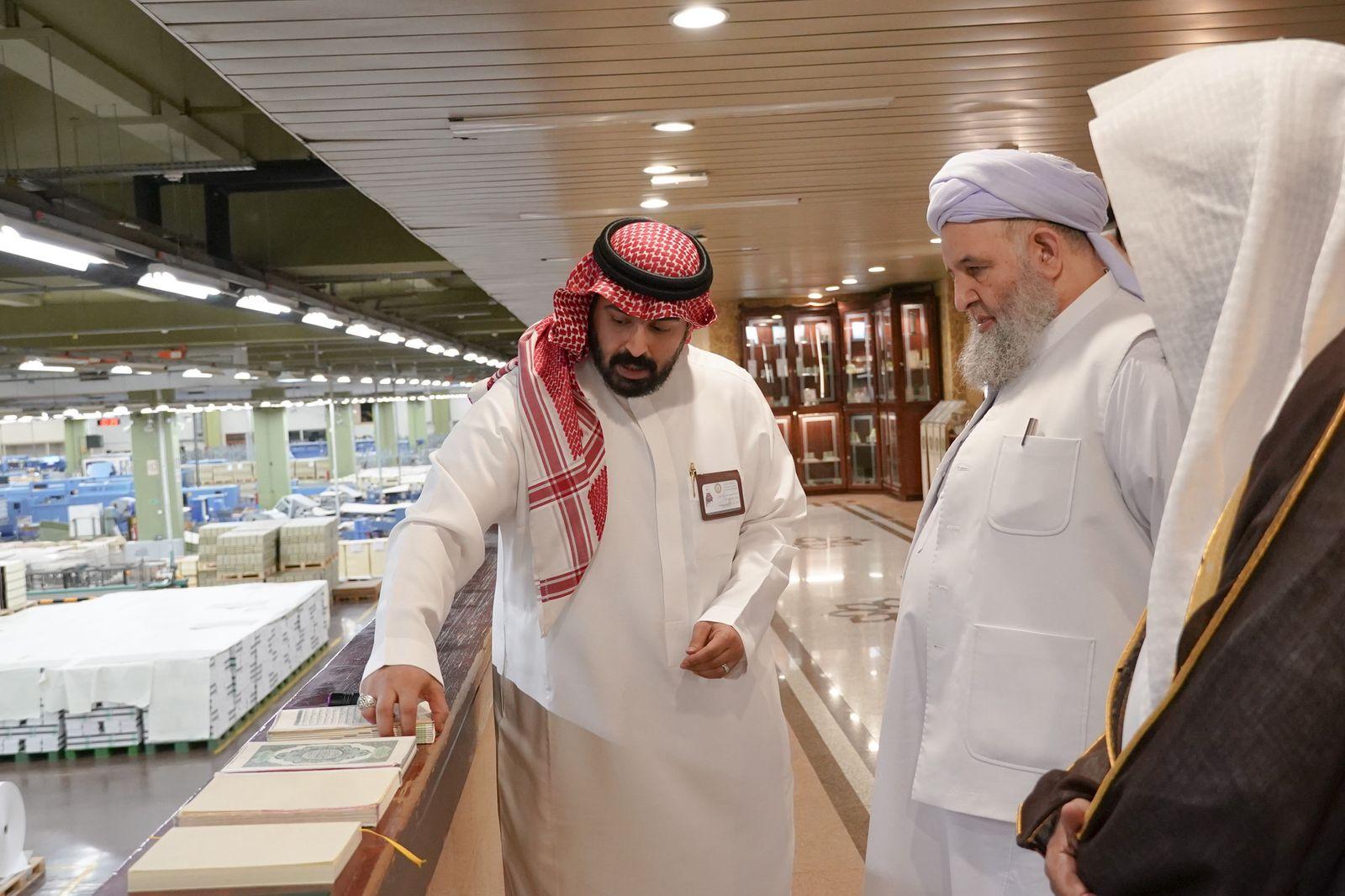 وأعرب الشيخ نور الحق عن سروره بما شاهده من اهتمام وحرص كبير على خدمة كتاب الله عز وجل، مشيدا بالعناية الفائقة والدقة الفنية في طباعة المصحف الشريف، وما يقدمه المجمع من خدمات متقنة، كما أثنى على دعم خادم الحرمين الشريفين الملك سلمان بن عبد العزيز، وولي عهده الأمين رئيس مجلس الوزراء الأمير محمد بن سلمان، لما يقدمان من دعم سخي لهذا الصرح الإسلامي المبارك مثمناً جهود معالي وزير الشؤون الإسلامية والدعوة والإرشاد، المشرف العام على المجمع، الشيخ الدكتور عبداللطيف بن عبدالعزيز آل الشيخ، في الارتقاء بأعمال المجمع وخدمة القرآن الكريم.
