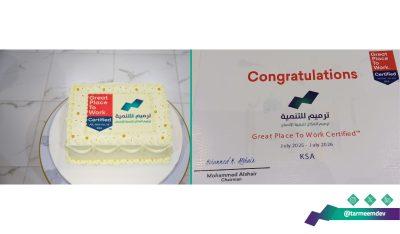أحتفلت جمعية ترميم للتنمية بمنطقة مكة المكرمة بحصولها على اعتماد “أفضل بيئة عمل” (Great Place to Work) المعتمد دوليًا، في حفلٍ أقيم بمقر الجمعية بحضور رئيس مجلس الإدارة سعادة الأستاذ – عماد المهيدب، والرئيس التنفيذي الدكتور عبدالله آل دربه، إلى جانب أعضاء المجلس ومنسوبي الجمعية.