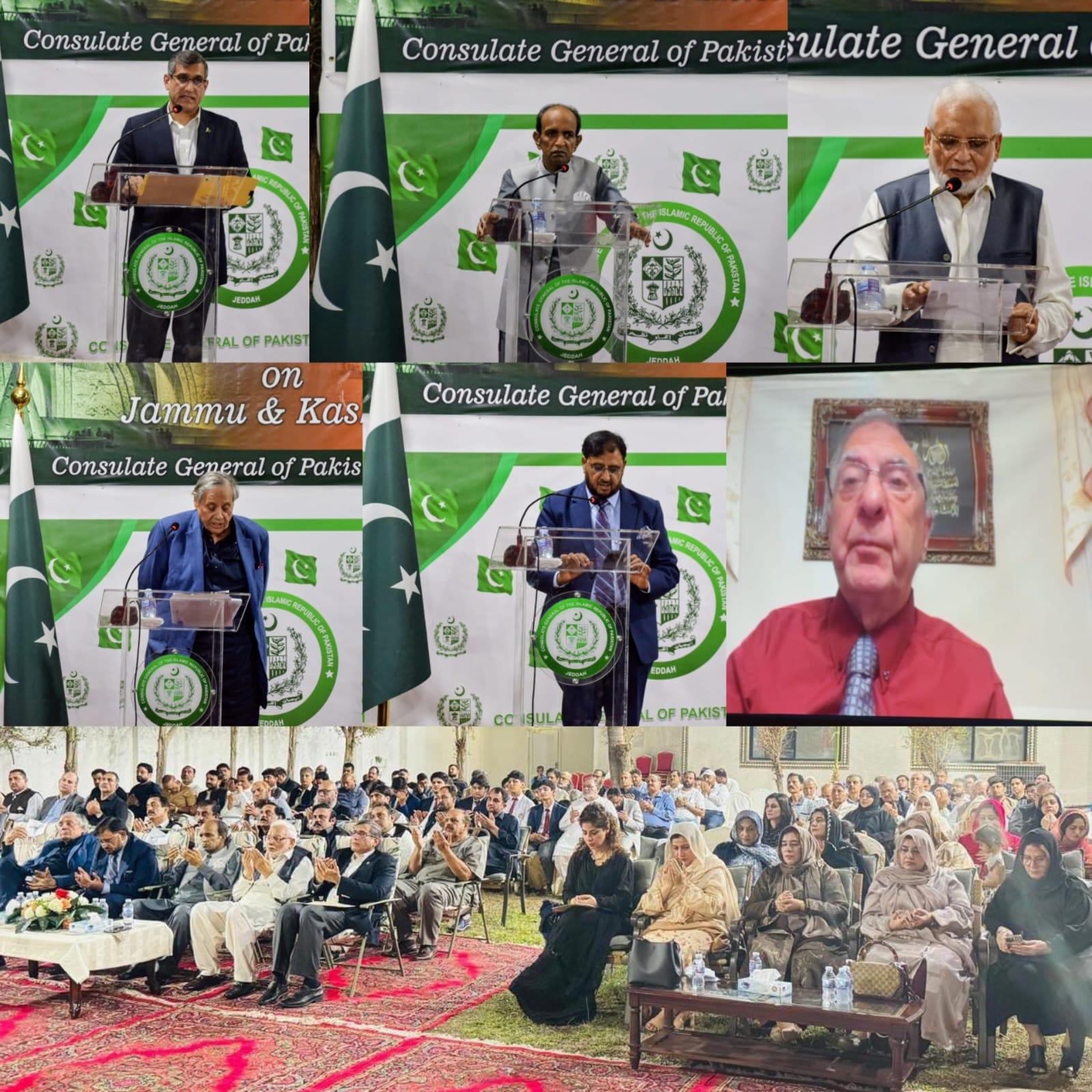 وفي كلمة ألقاها بهذه المناسبة، وأشاد القنصل العام الباكستاني، السيد خالد مجيد، بالدعم المستمر الذي تقدمه منظمة التعاون الإسلامي وحكومة المملكة العربية السعودية لقضية كشمير.