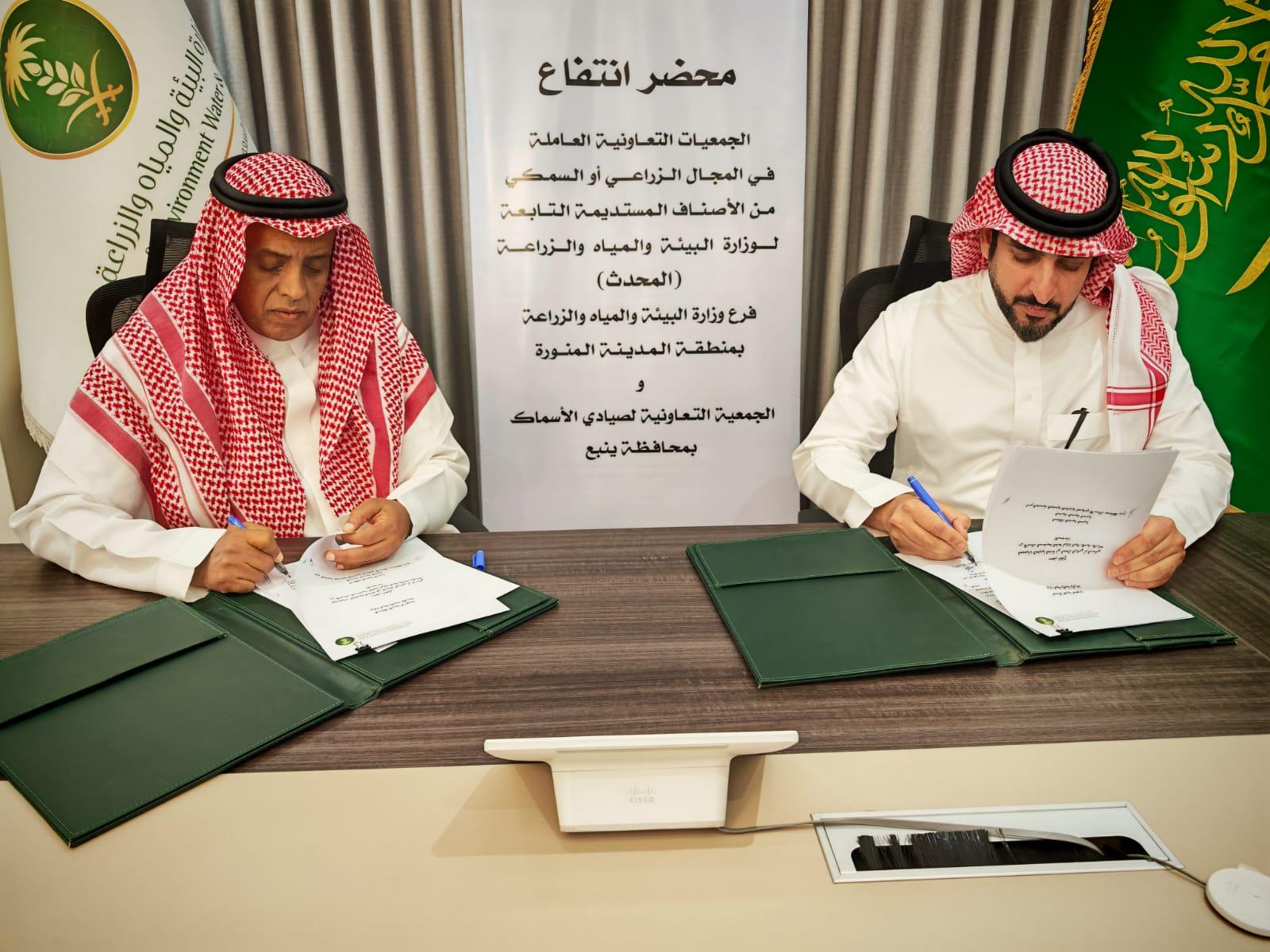 ومثّل الوزارة في التوقيع، مدير عام الفرع، المهندس أيمن بن محمد السيد، فيما مثّل الجمعية رئيس مجلس إدارة الجمعية التعاونية لصيادي الأسماك بمحافظة ينبع حامد بن يحيى الجهني.