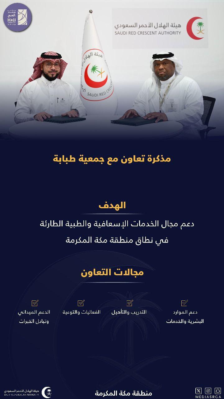 أبرمت جمعية طِبابة الصحية مذكرة تعاون مع هيئة الهلال الأحمر السعودي، بهدف دعم وتعزيز جودة الخدمات الإسعافية والطبية الطارئة داخل الحرم المكي الشريف، بما يسهم في الارتقاء بمستوى الرعاية الصحية المقدمة لضيوف الرحمن.