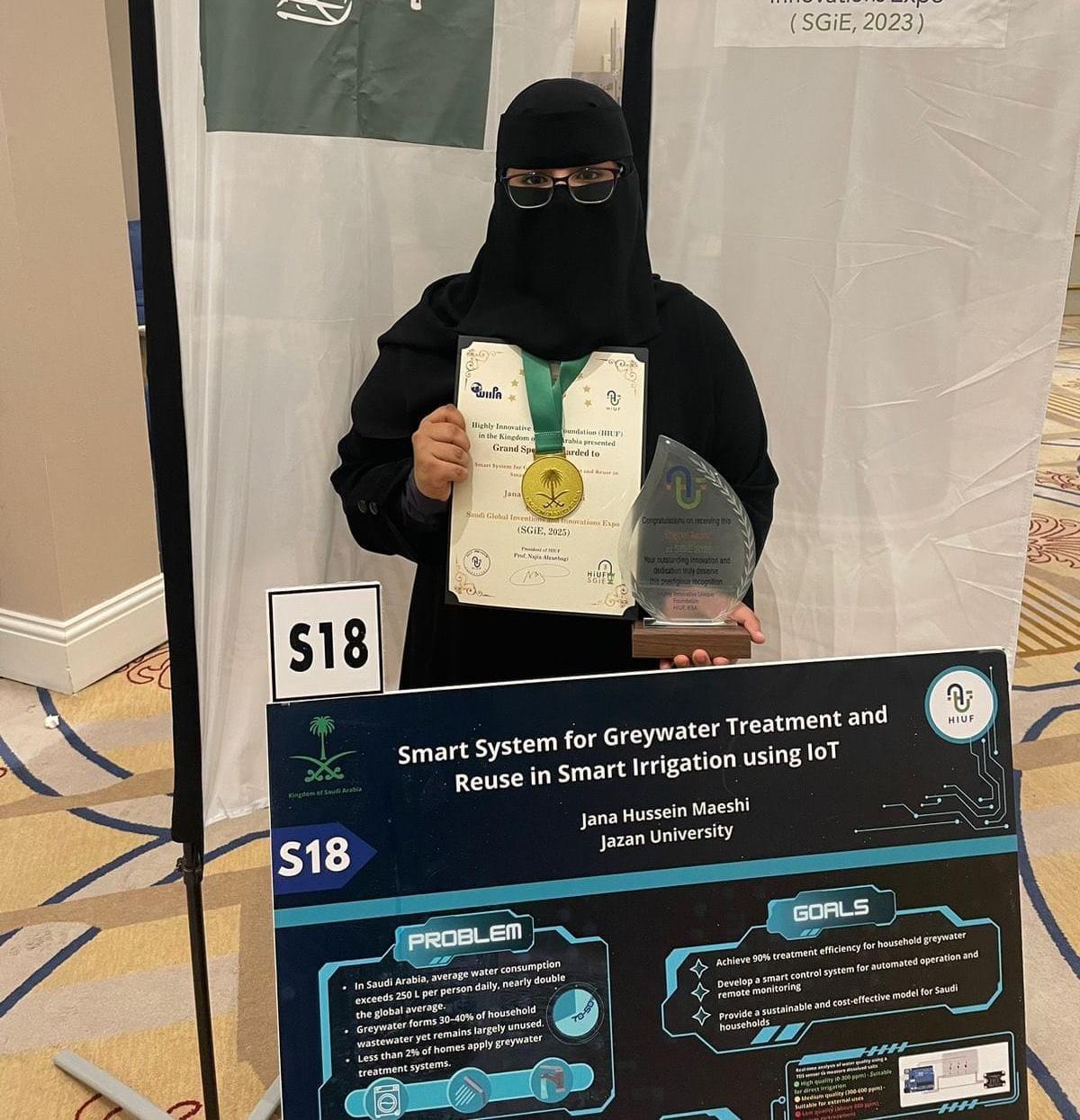 في إنجاز علمي يعزز مكانة الشباب السعودي في سماء الابتكار العالمي، حصدت الطالبة – جنا حسين معشي، من قسم الهندسة الكيميائية بكلية الهندسة وعلوم الحاسب في جامعة جازان، الميدالية الذهبية والجائزة الخاصة الكبرى من HIUF خلال مشاركتها في المعرض السعودي العالمي للاختراعات والابتكارات (SGiE 2025).