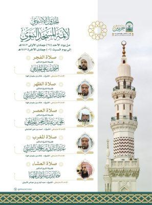 حددت رئاسة الشؤون الدينية بالحرمين الشريفين الجدول الأسبوعي لأئمة المسجد الحرام والمسجد النبوي من يوم غد الأحد 25 جمادى الأولى إلى يوم السبت القادم ١ جمادى الآخرة 1447هـ وجاء الجدول على النحو التالي :-