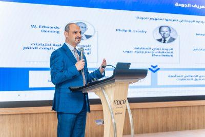 وتناول العجوري خلال الورشة عددًا من المحاور، أبرزها: أهمية ضبط الجودة، وفوائد تبنّي نظام إدارة الجودة في تحسين مستوى الخدمات واستثمار الفرص، ودور مشاركة الموظفين والعاملين في تعزيز كفاءة تنفيذ الأعمال، كما استعرض معايير الجودة ونماذج التميّز المؤسسي العالمية، بالإضافة إلى أبرز الوسائل والأدوات المستخدمة في إدارة الجودة، ومجالات توظيف الذكاء الاصطناعي لدعم رحلات التطوير والتحسين في الجهات المؤسسية.