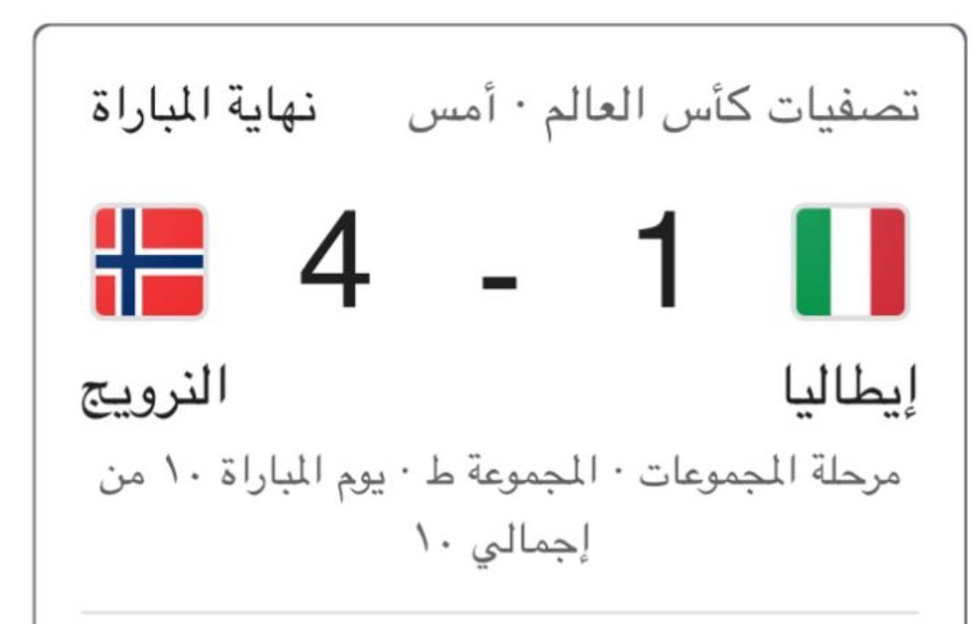 إيطالي يفوز وإيطاليا تخسر – هذا ما حدث في الليلة الزرقاء النجم التنسي الايطالي يانيك سينر يهزم الاسباني الكاراز بمجوعتين للاشي في بطولة تورينو بإيطاليا – بينما المنتخب الايطالي اللازوري يسقط أمام منتخب النرويج 4 -1 في سان سيرو وبذلك تتأهل النرويج لكأس العالم 2026 ويذهب الطليان للملحق الاوروبي مع مدربهم جاتوزو ولديه أضعف نسخة من اللاعبين في تاريخ إيطاليا والخوف أن لا تتأهل لكأس العالم 2026 وتصبح هي المرة الثالثة على التوالي تغيب عن المونديال العالمي – في المقابل منتخب النرويج هو مفاجأة التصفيات الاوروبية حيث تأهل بكامل النقاط وله 24 نقطة من 8 مباريات.