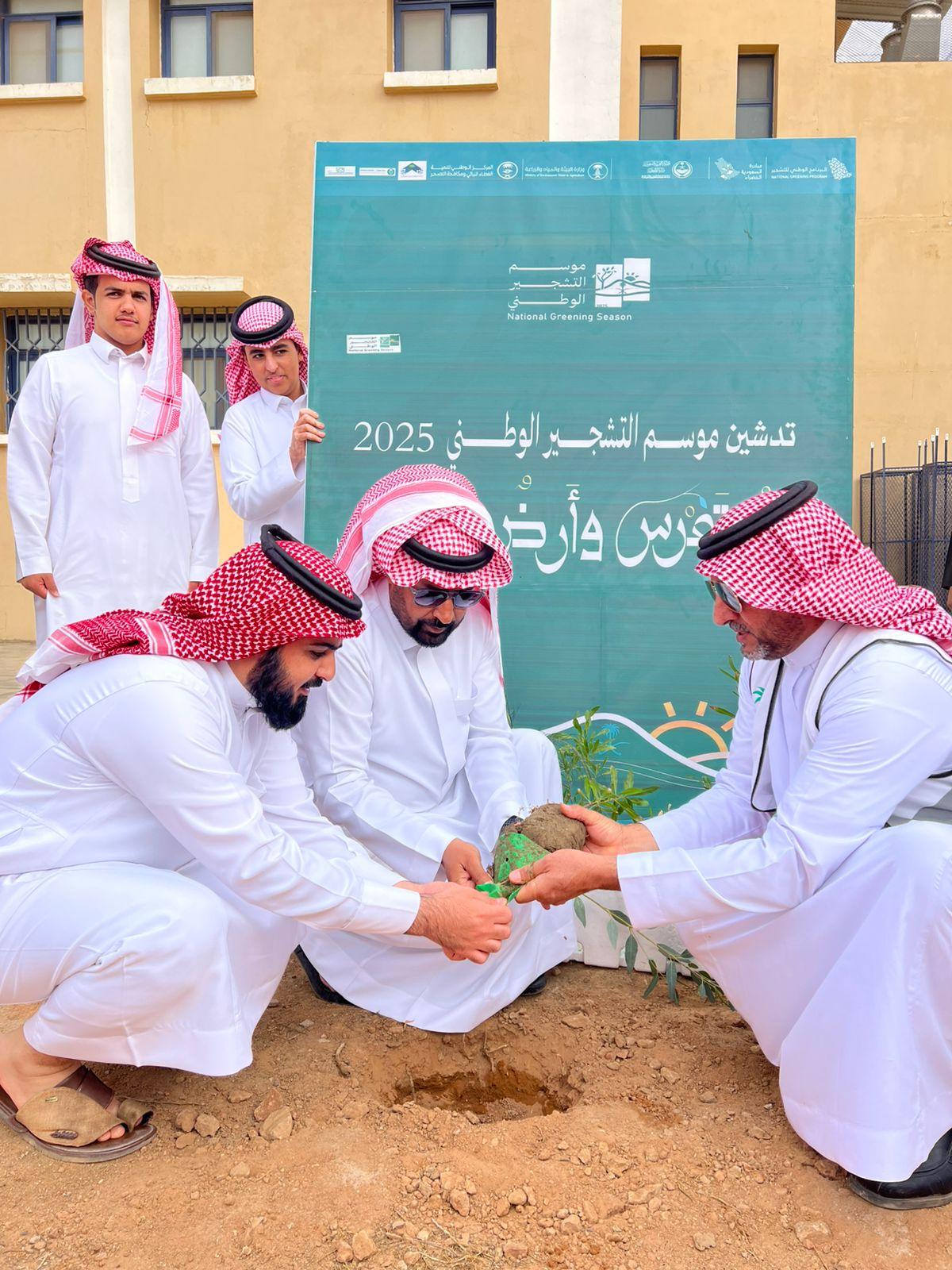 وشهدت الفعالية زراعة عدد من الأشجار المحلية الملائمة لبيئة المنطقة داخل أسوار المدرسة بمشاركة المدرسين والطلاب والمتطوعين تعزيزًا لجهود نشر الوعي البيئي، وتأكيدًا على أهمية تنمية الغطاء النباتي والحفاظ عليه تحقيقًا لمستهدفات مبادرة السعودية الخضراء.