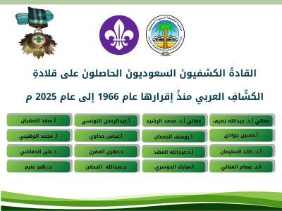 منذ عام 1966م، تاريخ إقرار القلادة، وحتى اليوم، صعد ستة عشر قائداً سعودياً إلى منصة التتويج؛ ستة عشر اسماً حمل كل واحدٍ منهم جزءاً من تطور التجربة الكشفية في المملكة، وأثرى السجل العربي بإسهاماته؛ منهم من قدّم بحوثاً علمية غيّرت أساليب العمل الكشفي، ومنهم من ترك مؤلفات أصبحت مراجع، ومنهم من عمل بصمت في اللجان العربية، فصنعوا أثراً لا يُرى إلا عندما تُعلن أسماؤهم أمام الوفود العربية.