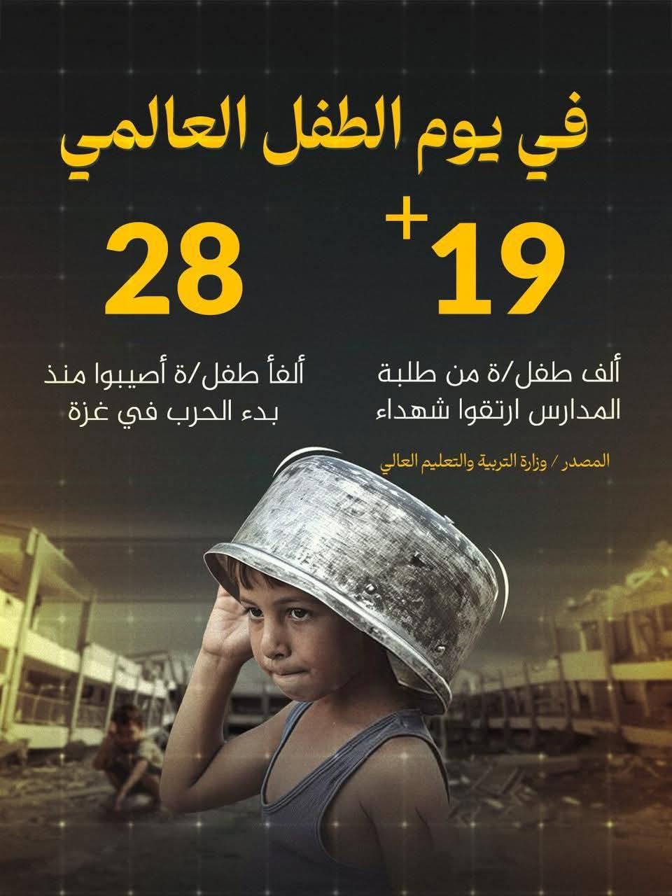 لأطفال غزة – نعدكم بأن تبقوا في صدارة أولوياتنا، وأن تظل قضيتكم صوتًا لا يخفت، وحقًا لا يسقط بالتقادم وفي هذا اليوم العالمي، نرفع رسالتنا للعالم: أوقفوا معاناة الأطفال، واحموا طفولتهم، فهم الأمل والبداية لكل شيء جميل.
