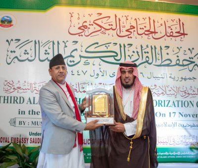 ويجسِّد هذا التكريم المتواصل تقدير المجتمع النيبالي لدور المملكة في خدمة القرآن الكريم وأهله، وما توليه وزارة الشؤون الإسلامية من عنايةٍ بتنظيم المسابقات وبرامج التحفيظ والتلاوة والتجويد، تأكيداً لرسالة المملكة في نشر القيم الإسلامية السمحة وترسيخ الاعتدال والتعايش بين الشعوب، وتعزيز حضورها الريادي في خدمة الإسلام والمسلمين في مختلف دول العالم.