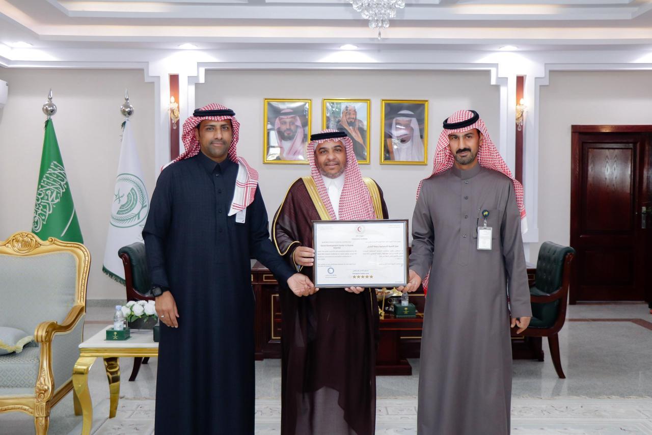 وجرى تسليم الشهادة في إمارة محافظة دومة الجندل، بحضور سعادة بدر بن عيد الشمري القائم بتسيير أعمال محافظة دومة الجندل، حيث قام سعادة مدير عام فرع هيئة الهلال الأحمر بمنطقة الجوف، نزال بن فرحان السليمان بتسليم الشهادة لمكتب التنمية الاجتماعية.