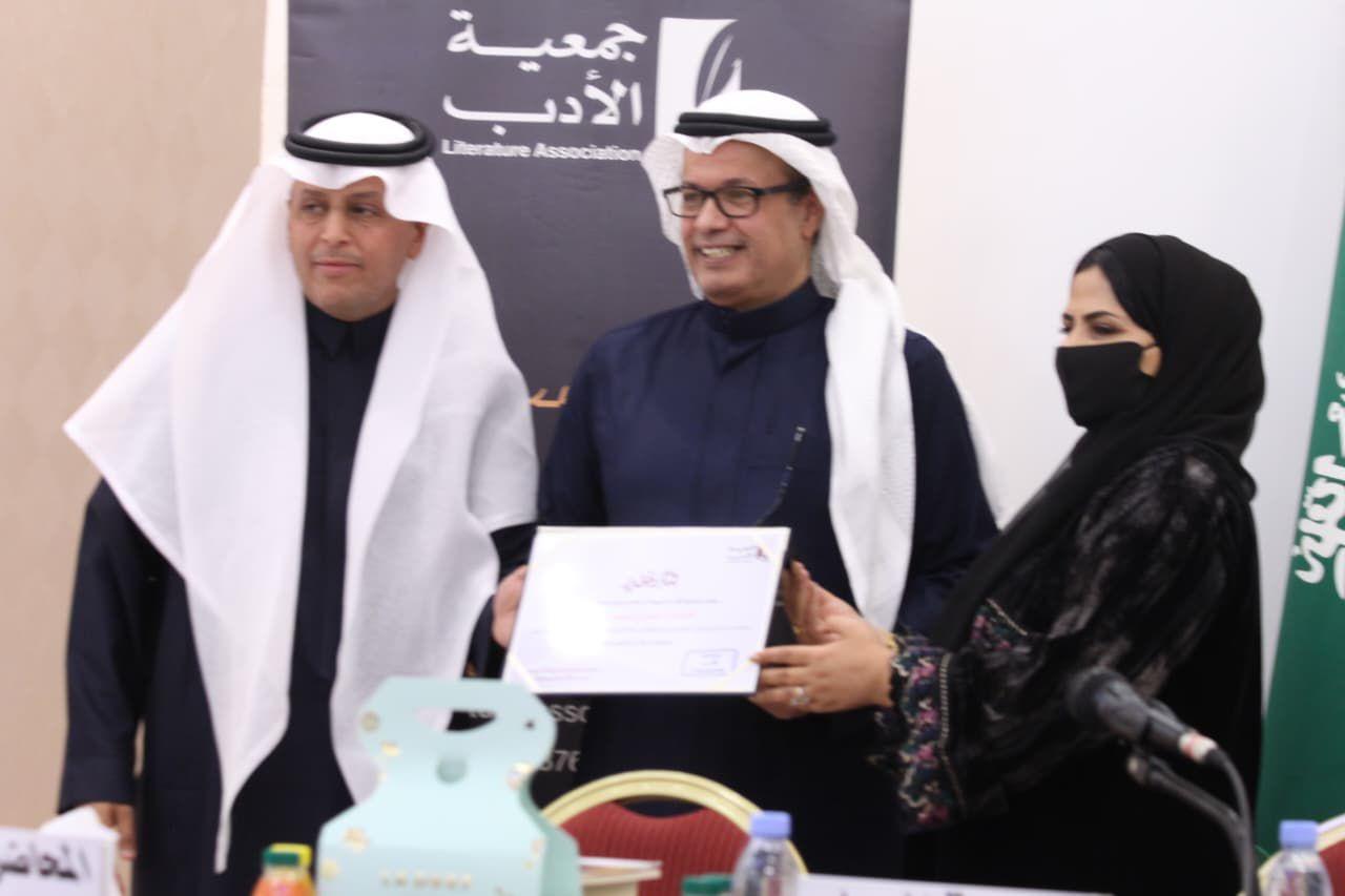 وفي نهاية المسامرة الأدبية قامت رئيس فريق سفراء الأدب الدكتورة مستورة العرابي ورئيس جمعية أدبي الطائف الأستاذ عطالله الجعيد بتكريم الضيف الأستاذ حسين بافقيه.