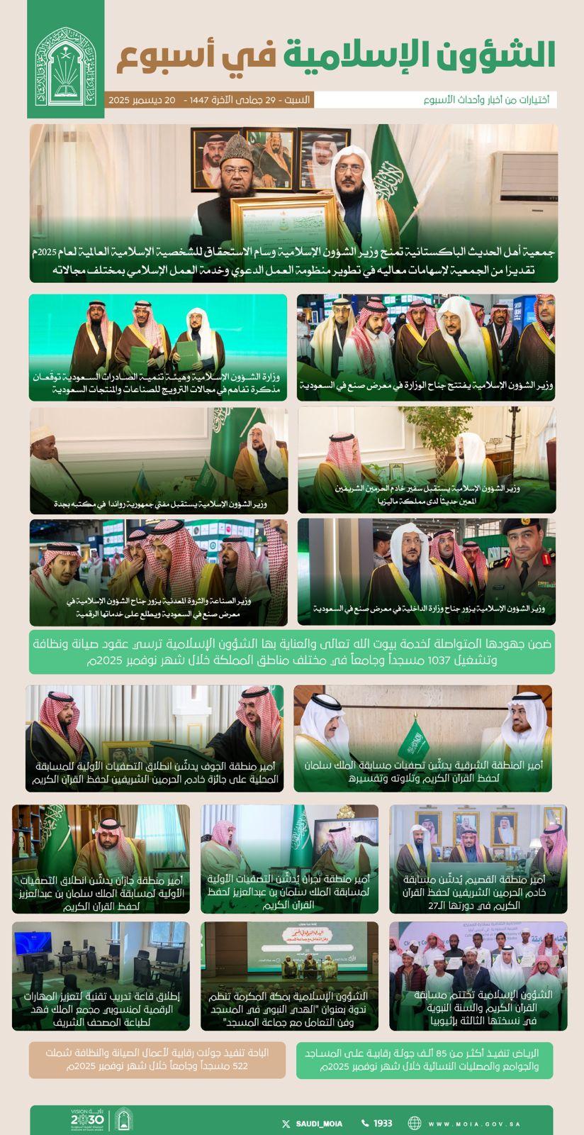 وزارة الشؤون الإسلامية تختتم أسبوعًا حافلًا بالمنجزات والفعاليات المحليّة والدولية تعزيزاً لرسالتها في خدمة الإسلام ونشر الوسطية.