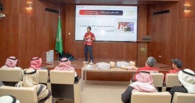 وقدّم البرنامج المدرب يوسف محمد الشريف، حيث تناول عدد من المحاور التطبيقية المهمة، من أبرزها: مهارة الإنعاش القلبي الرئوي، ومهارة استخدام جهاز الإنعاش الآلي (AED)، والتعامل مع حالات الغصّة، إضافة إلى مهارات إيقاف النزيف، وذلك بأسلوب تدريبي عملي يعزز سرعة الاستجابة في الحالات الطارئة.