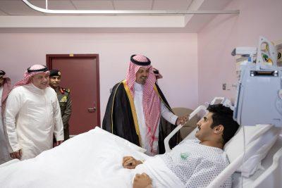 والتقى سموه الطاقم الطبي المشرف على علاج الجندي آل أحمد واستمع إلى شرح عن حالته والخدمات العلاجية المقدمة له.
