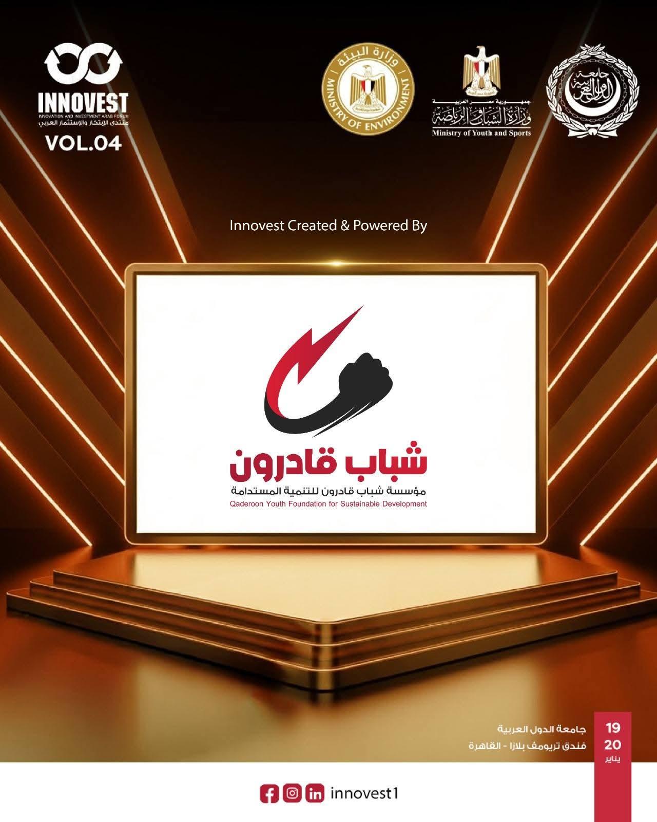 تعلن ووزارة الشباب والرياضة بجمهورية مصر العربية الإدارة المركزية لتمكين الشباب، وجامعة الدول العربية عن رعايتهما الرسمية للنسخة الرابعة من منتدى الابتكار والاستثمار العربي، بالتعاون مع مؤسسة شباب قادرون للتنمية المستدامة، الجهة المنفذة والمنظمة للمنتدى.