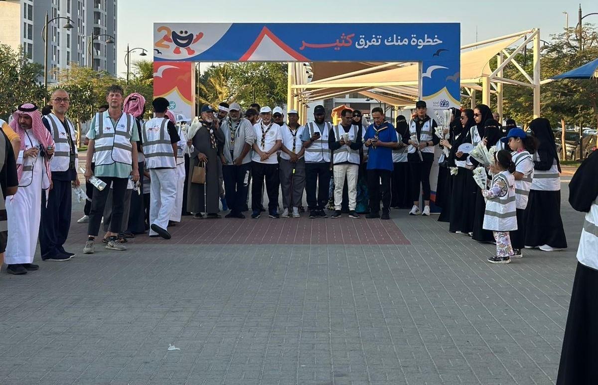 تحت شعار – (خطوة منك تفرق كثير جدة تمشي ) شارك أعضاء مكتب رواد ورائدات كشافة جدة في مبادرة أمانة مدينة جدة في برنامج جدة تمشي النسخة الثانية، والتي شارك فيها اكثر من (10 ) أعضاء من رواد كشافة جدة في ممشى اليمامة يوم الخميس الأول من يناير 2026 م بمشاركة مدير المكتب الأستاذ الرائد محمد الخرمي حيث إلتقى بالقائمين على المبادرة من أمانة محافظة جدة الاستاذ عطية الزهراني والأستاذ عامر الشريف شاكراً لهم على هذه المبادرة راجياً الله أن تصل هذه الرسالة لجميع أفراد المجتمع لتحقيق الهدف المنشود والوصول لمليون مشارك.