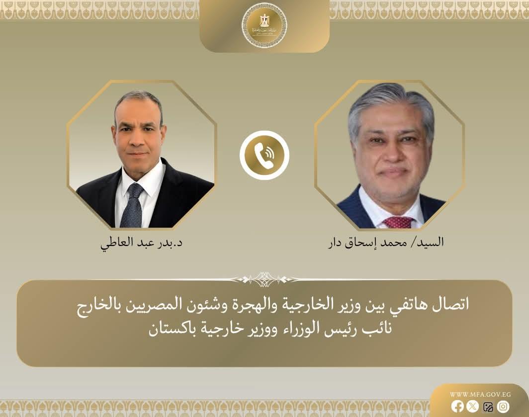 جرى اتصال هاتفي بين د. بدر عبد العاطي وزير الخارجية والهجرة وشئون المصريين بالخارج، يوم الاحد ٤ يناير ٢٠٢٦، والسيد محمد إسحاق دار نائب رئيس الوزراء ووزير خارجية جمهورية باكستان الإسلامية، حيث تناول الاتصال سبل تعزيز العلاقات الثنائية والتشاور حول عدد من القضايا الإقليمية والدولية ذات الاهتمام المشترك.