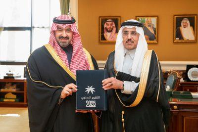 واطلع سموه خلال اللقاء على التقرير السنوي لفرع وزارة الموارد البشرية والتنمية الاجتماعية بالمنطقة للعام 2025م، مستمعًا سموه لشرح عن إنجازات وأعمال الفرع، وما يقدمه من خدمات وبرامج ومبادرات للمستفيدين بمنطقة تبوك والمحافظات التابعة لها.