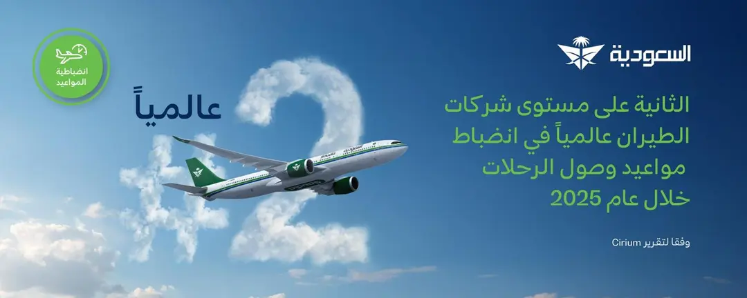 حققت الخطوط السعودية المركز الثاني عالميًا في انضباط مواعيد وصول الرحلات لعام 2025 من واقع تقرير موقع Cirium المتخصص في رصد عمليات وأداء شركات الطيران والمطارات للمرة الثانية على التوالي، الذي أشار إلى تسجيل نسبة (86.53%) لرحلات الوصول لإجمالي (202.8) ألف رحلة عبر شبكتها التي تغطي أكثر من مئة وجهة في أربع قارات.