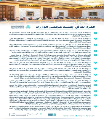 واطّلع المجلس على الموضوعات المدرجة على جدول أعماله، من بينها موضوعات اشترك مجلس الشورى في دراستها، كما اطّلع على ما انـتهى إليه كل من مجلسي الشؤون السياسية والأمنية، والشؤون الاقتصادية والتنمية، واللجنة العامة لمجلس الوزراء، وهيئة الخبراء بمجلس الوزراء في شأنها، وقد انتهى المجلس إلى ما يلي: