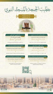 وسيتولى فضيلة الشيخ الأستاذ الدكتور عبدالله بن عواد الجهني إمامة المصلين وإلقاء خطبة الجمعة في المسجد الحرام فيما يخطب ويؤم المصلين في المسجد النبوي فضيلة الشيخ الدكتور علي الحذيفي.