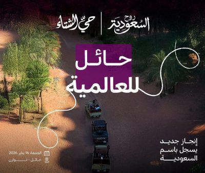 برعاية كريمة من صاحب السمو الملكي الأمير عبدالعزيز بن سعد بن عبدالعزيز، أمير منطقة حائل رئيس مجلس إدارة هيئة تطوير منطقة حائل، تستعد منطقة توارن التاريخية في شمال غربي حائل؛ التي ارتبط اسمها بسيرة حاتم الطائي؛ لاحتضان أحد الفعاليات النوعية العالمية، في حدث فريد تستضيف من خلاله أكبر مسيرة لسيارات الدفع الرباعي على مستوى السعودية والمنطقة والعالم، وذلك يوم غد الجمعة الموافق 16 يناير 2026م، لكسر الرقم القياسي العالمي لموسوعة غينيس.