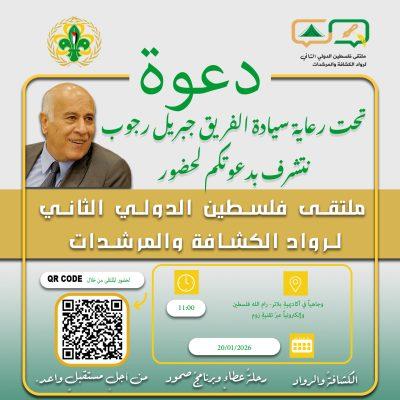 تحتَ رعايةِ سيادةِ الفريقِ جبريلِ الرجوبِ، رئيسِ جمعيةِ الكشافةِ الفلسطينيةِ يقام