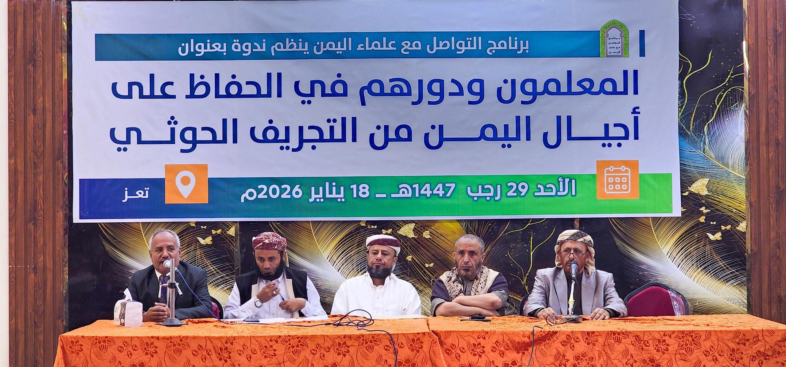 وتأتي هذه الندوة في إطار سلسلة من الفعاليات التي ينفذها “برنامج التواصل مع علماء اليمن”، لتعزيز دور العلماء والدعاة في مواجهة التحديات الوجودية التي تهدد عقيدة وتاريخ ورموز اليمن.
