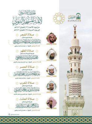 ويأتي إعتماد هذا الجدول في إطار تنظيم شؤون الإمامة بالمسجد الحرام والمسجد النبوي، بما يتيح للمصلين أداء عباداتهم في أجواء روحانية مفعمة بالطمأنينة، وبقيادة أئمةٍ من أهل العلم والخبرة.