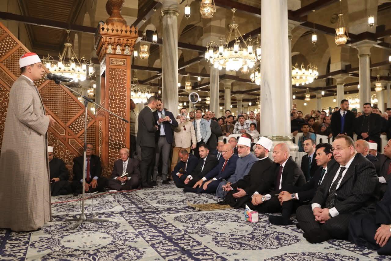 حضر الاحتفال، أ.د. أسامة الأزهري، وزير الأوقاف، أ.د. أشرف صبحى، وزير الشباب والرياضة، أ.د. محمد الضويني، وكيل الأزهر الشريف، الدكتور إبراهيم صابر، محافظ القاهرة، أ.د. سلامة داود، رئيس جامعة الأزهر، السيد محمود الشريف، نقيب السادة الأشراف، والدكتور عبد الهادي القصبي، شيخ مشايخ الطرق الصوفية، ولفيف من كبار علماء الدين وأعضاء مجلسي النواب والشيوخ، وجموع كبيرة من المصلين ورواد المسجد وسط أجواء عامرة بالإيمان.